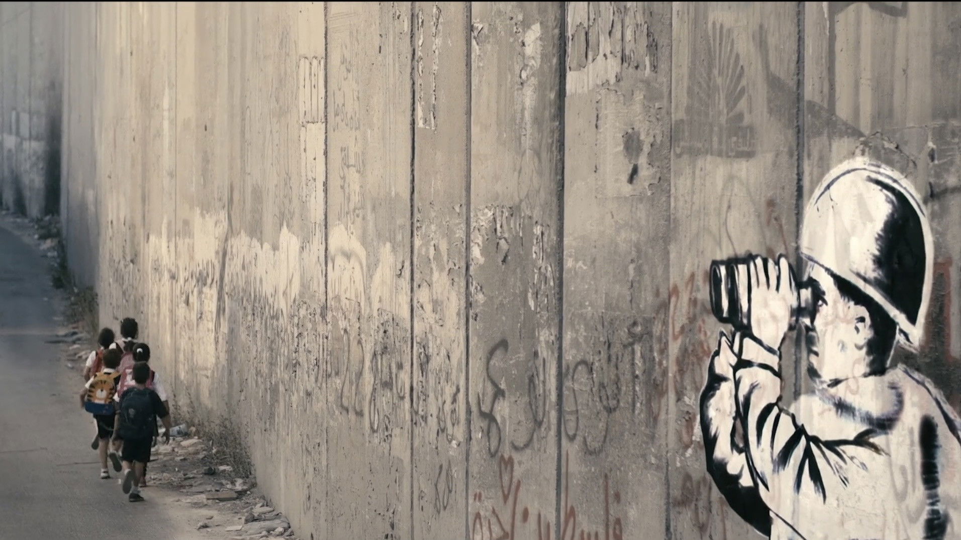 The daily journey the balloon girl takes, witnessing the effects of the apartheid wall, as it separates children from their schools, families from each other and people from their land.