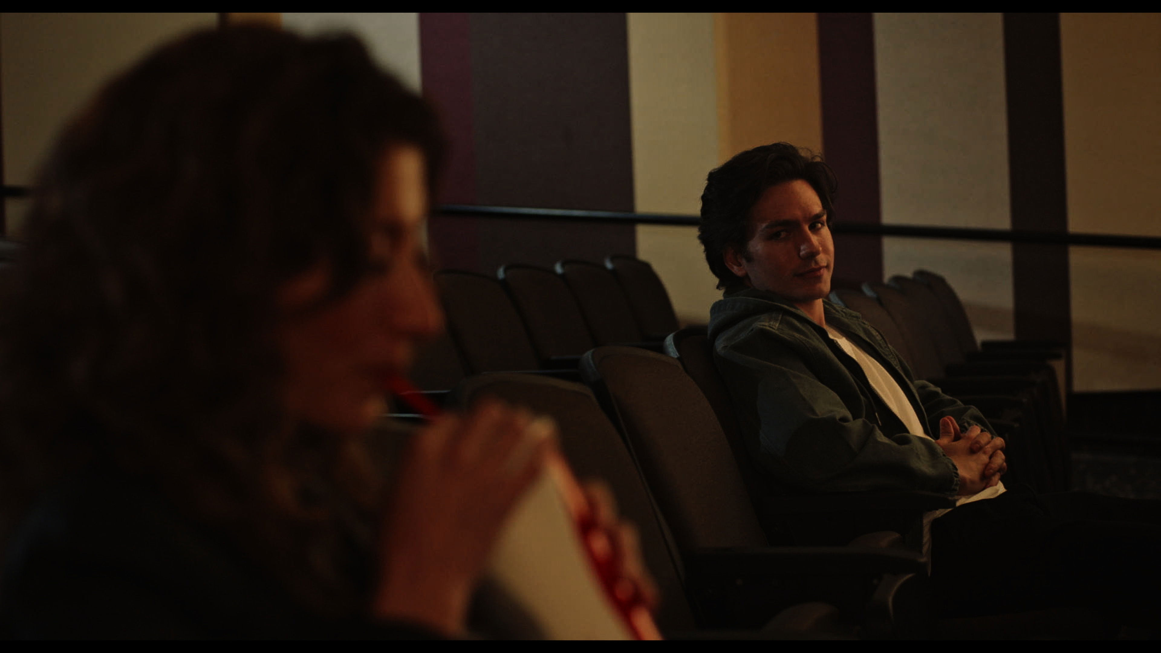 During the intermission of a film, two strangers in the audience form a connection as they debate how the movie will end.