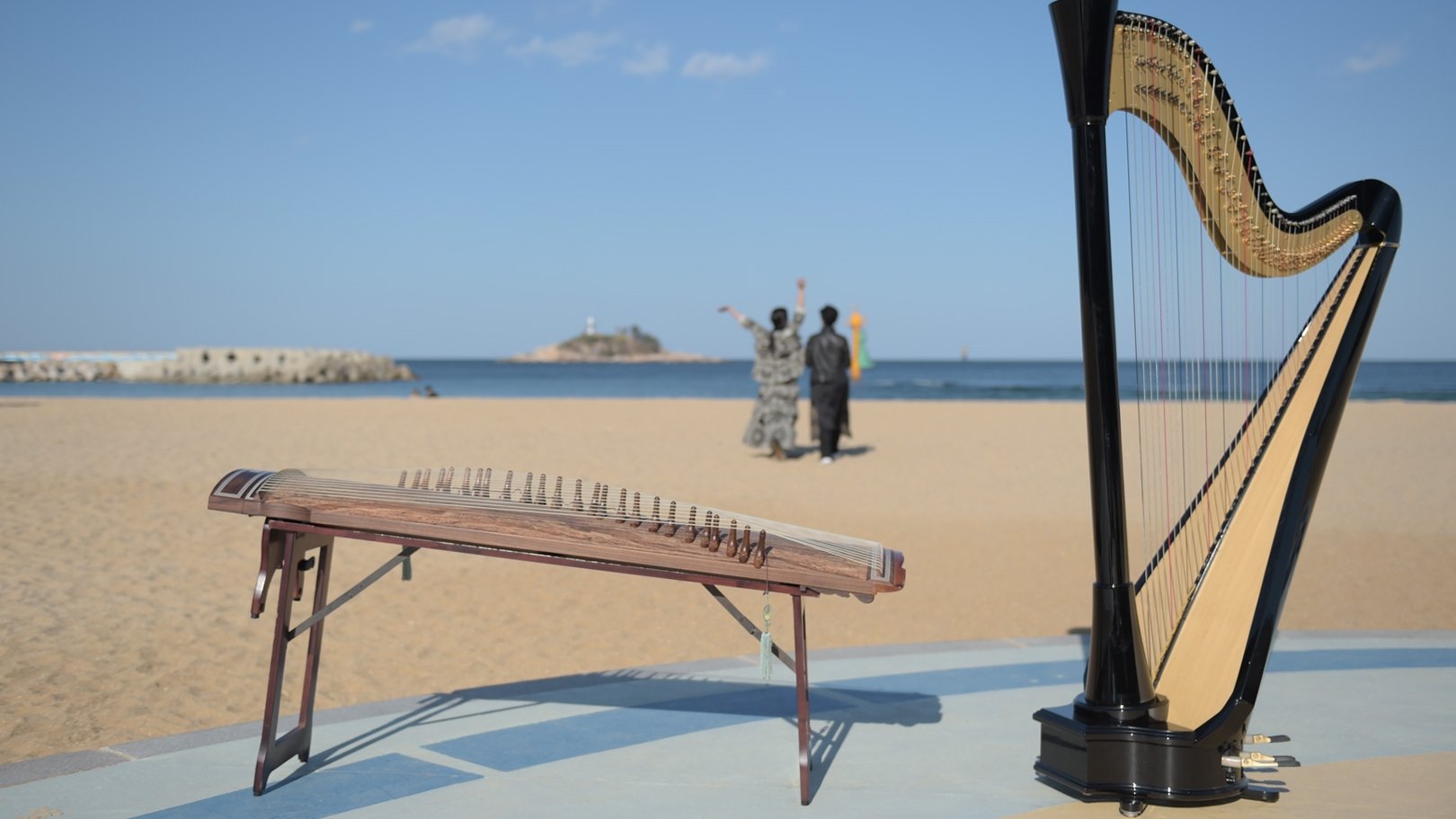 A sanjo gayageum has twelve strings while a harp has forty-seven. Gayageum musician Joo Bora and harpist Lee Gihwa form a duo with the aim of bridging East and West through the two traditional string instruments. In the wake of COVID-19, they prepare for their first performance together, taking a step closer to each other and gaining a deeper understanding of the differences between their musical instruments. They learn to appreciate emptiness, and then interpret it through the act of artistic giving.